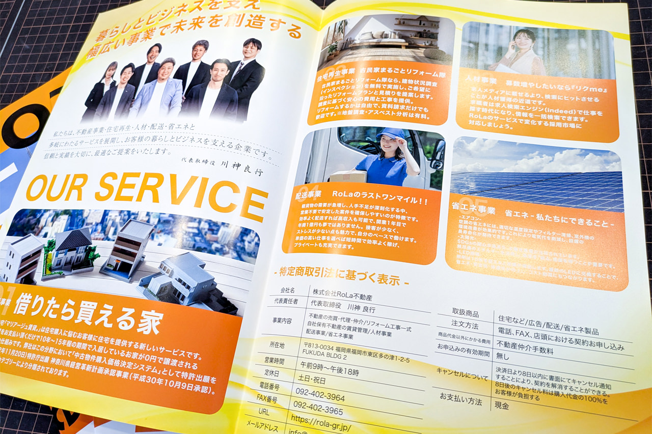 株式会社RoLa不動産さま〈パンフレット制作〉 パンフレット 制作/印刷 2025/10/25 パンフレット制作もご相談ください! 株式会社RoLa不動産様からパンフレットの制作依頼を頂きました。 ご依頼ありがとうございました! パンフレット 制作/印刷 パンフレット 制作/印刷についての詳細はこちらから
